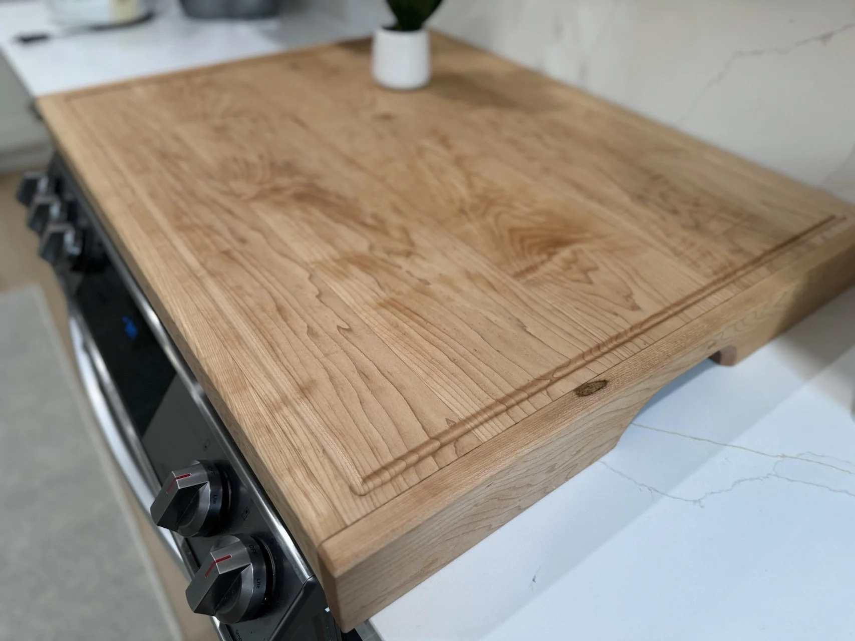 Elevate your kitchen with our handcrafted stove cover, made exclusively from premium hardwoods such as rich Walnut or elegant Maple. Each piece is carefully selected and finished to be food-safe, combining timeless beauty with everyday functionality.